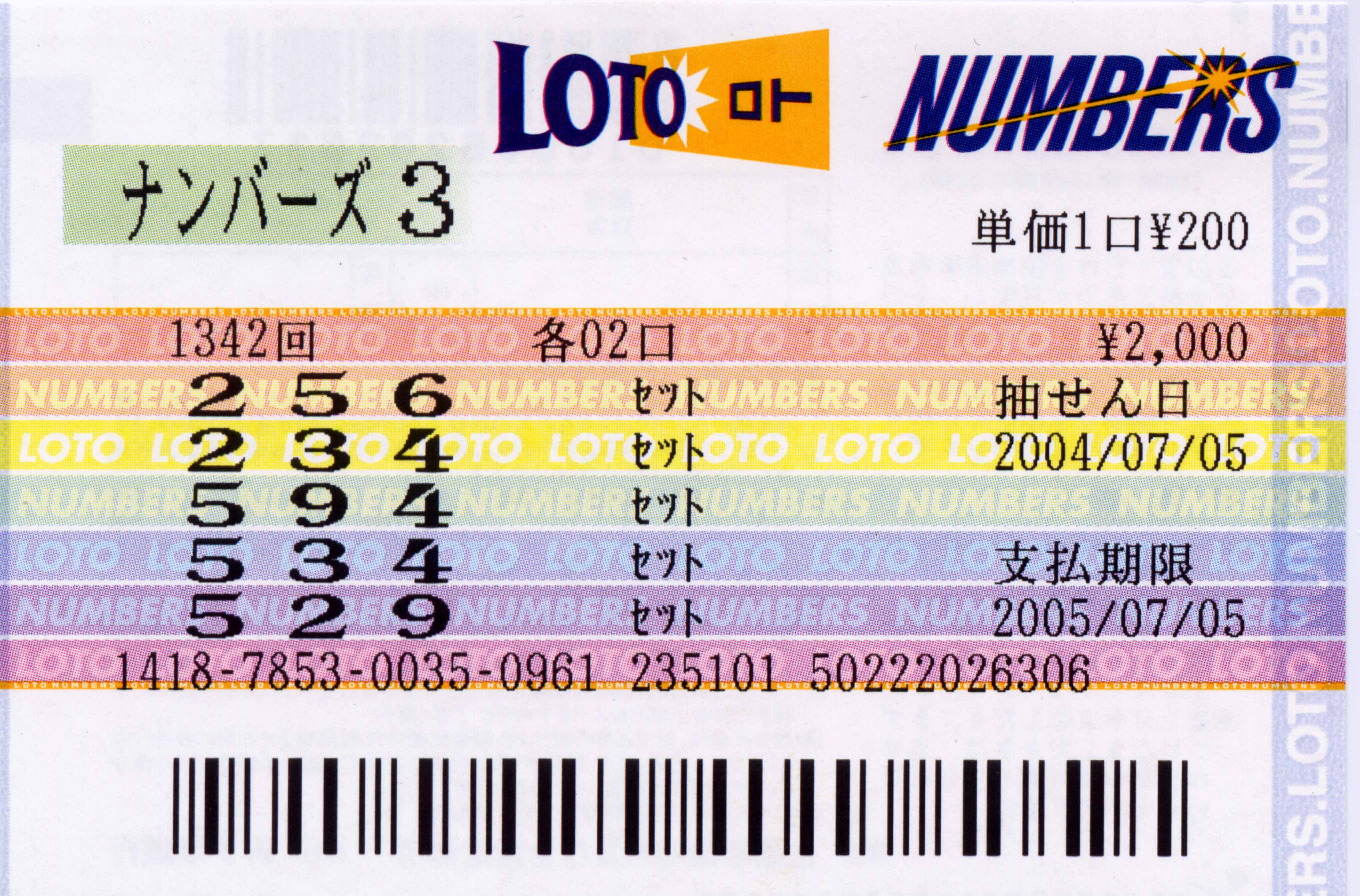■ストレート当選 101,300円